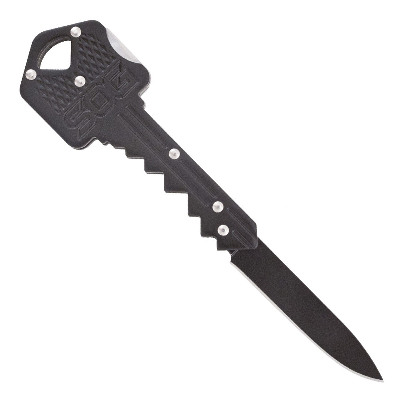SOG - Key Knife, Compact Lockback Folding Knife with Key-Shaped Design (Available in Black and Brass)
