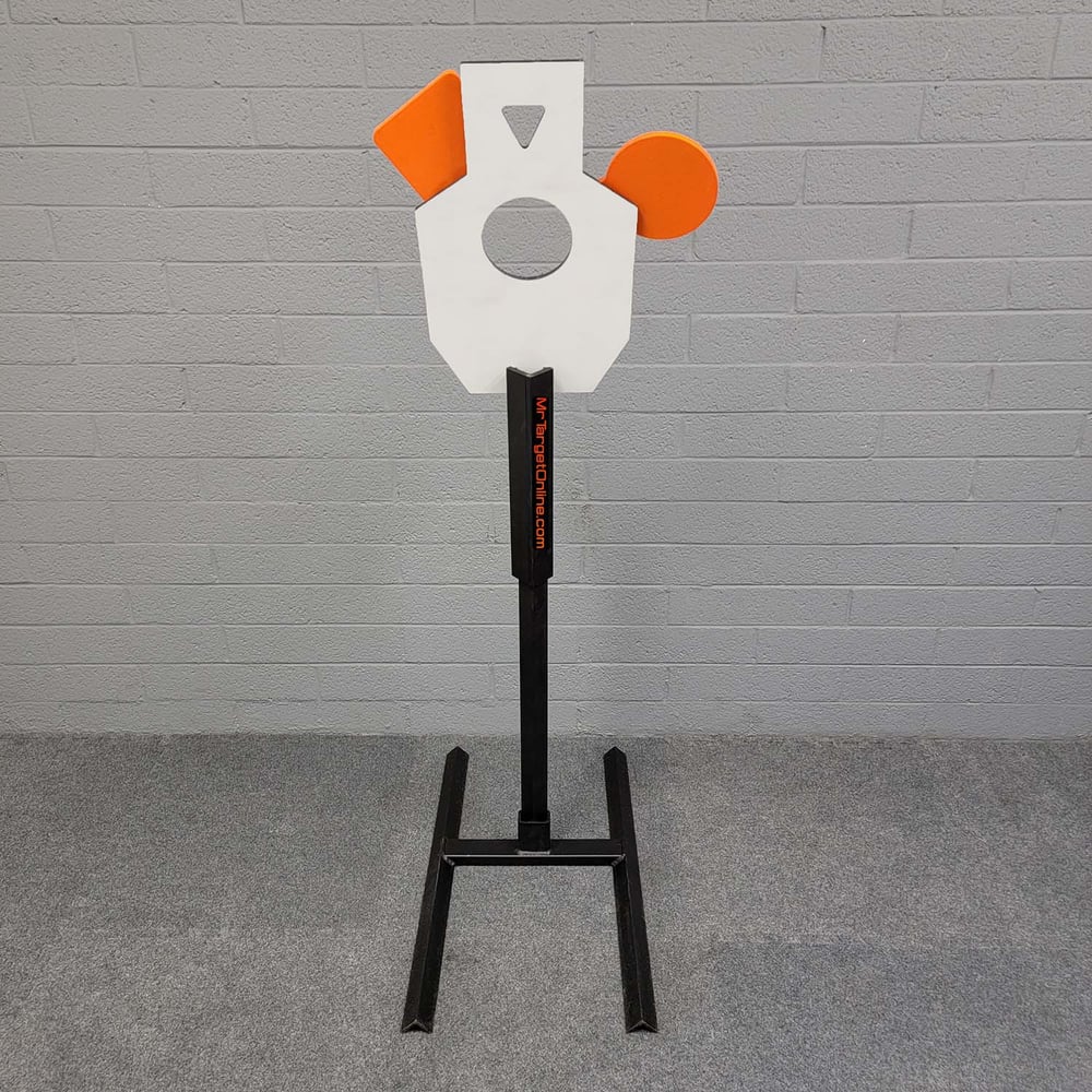 The secret to a good target is an excellent base (yeah, we trademarked that).  We recommend one of our modular armored bases for greatest ease of use, sturdiness, and reliability.  Our uprights pull right out of our H-bases allowing you to lay them flat in your truck, case, or bag and put them back together in seconds without tools.
