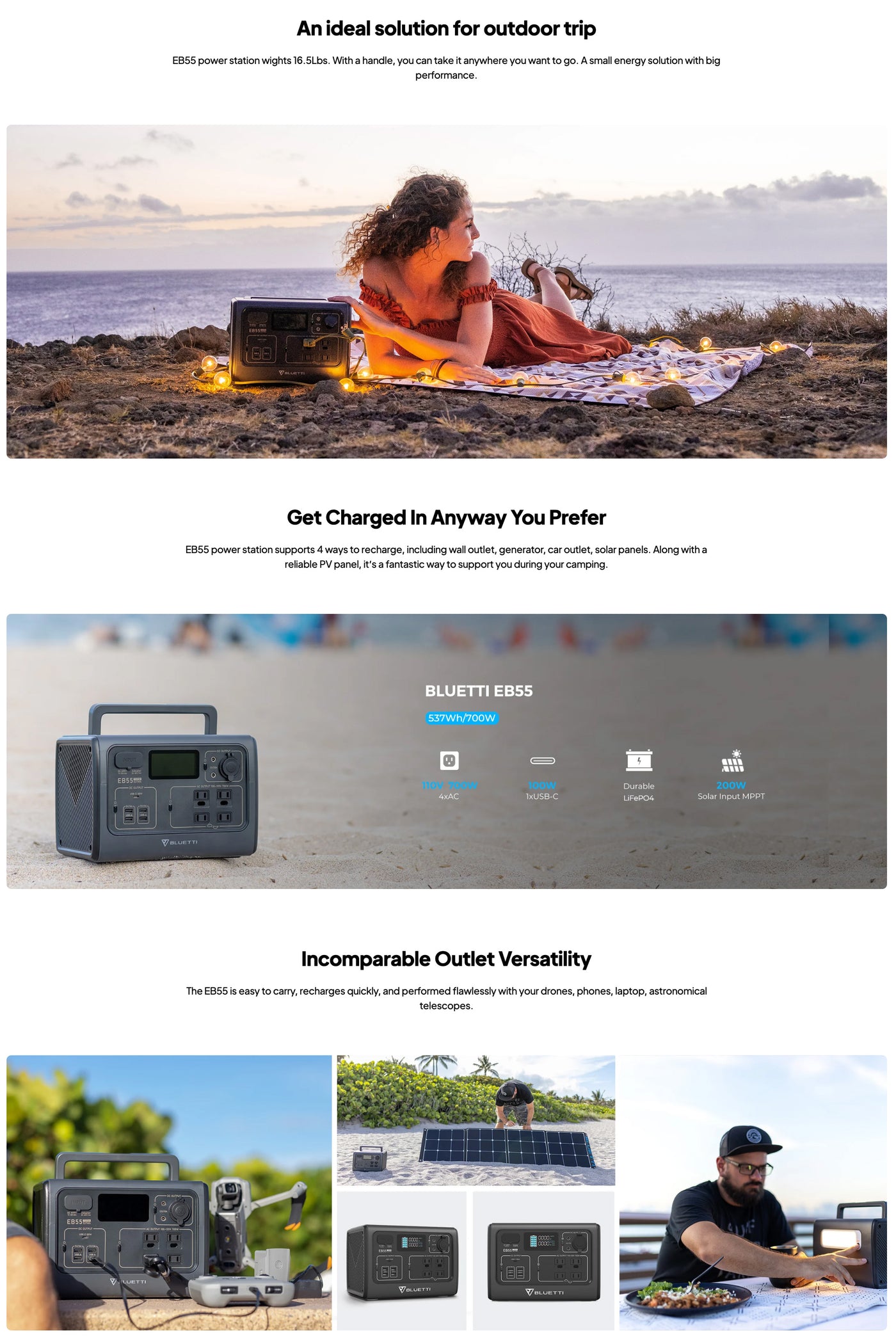 Whether you're camping, tailgating, hosting outdoor events, or need a reliable backup power source, the BLUETTI EB55 Portable Power Station is your dependable companion. It's eco-friendly, gas-free, quiet, and cost-effective - making it the perfect choice for any occasion where power matters.