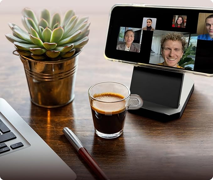 - HIGH VISIBILITY: Elevate your phone while charging, providing optimal visibility for notifications, emails, and meetings. The ergonomic angle reduces glare and maximizes screen readability, keeping your phone in the perfect position.