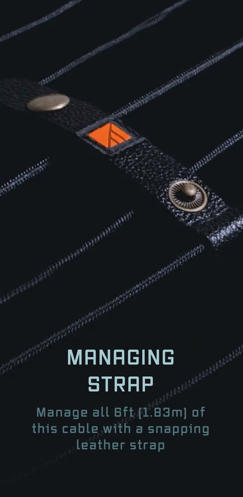 - Managing Strap: Comes with a snapping leather strap for cable management
