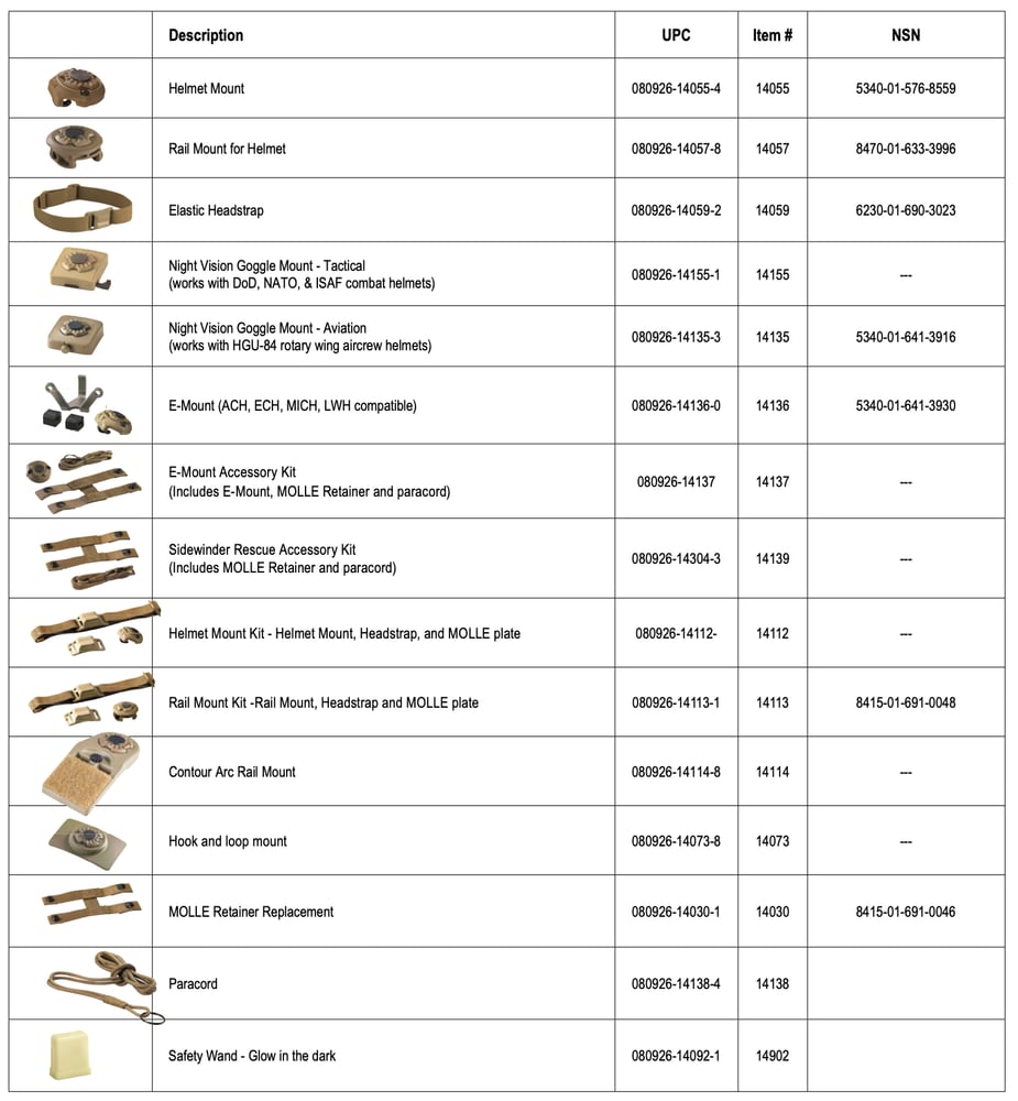 - Mounts to MIL-STD-1913 style rail on tactical helmets