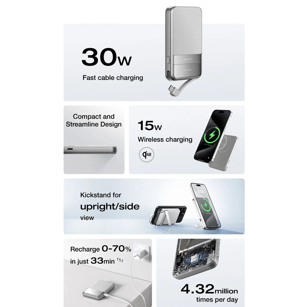 - 30W Built-in USB-C Cable: Ultra-fast, cable-free charging for your devices—no extra cords needed.