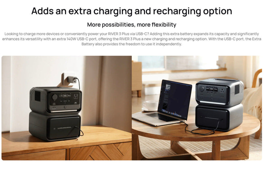Whether you're powering a campsite, prepping for power outages, or expanding your solar kit, the EcoFlow RIVER 3 Plus Extra Battery gives you the freedom to adapt and stay prepared.