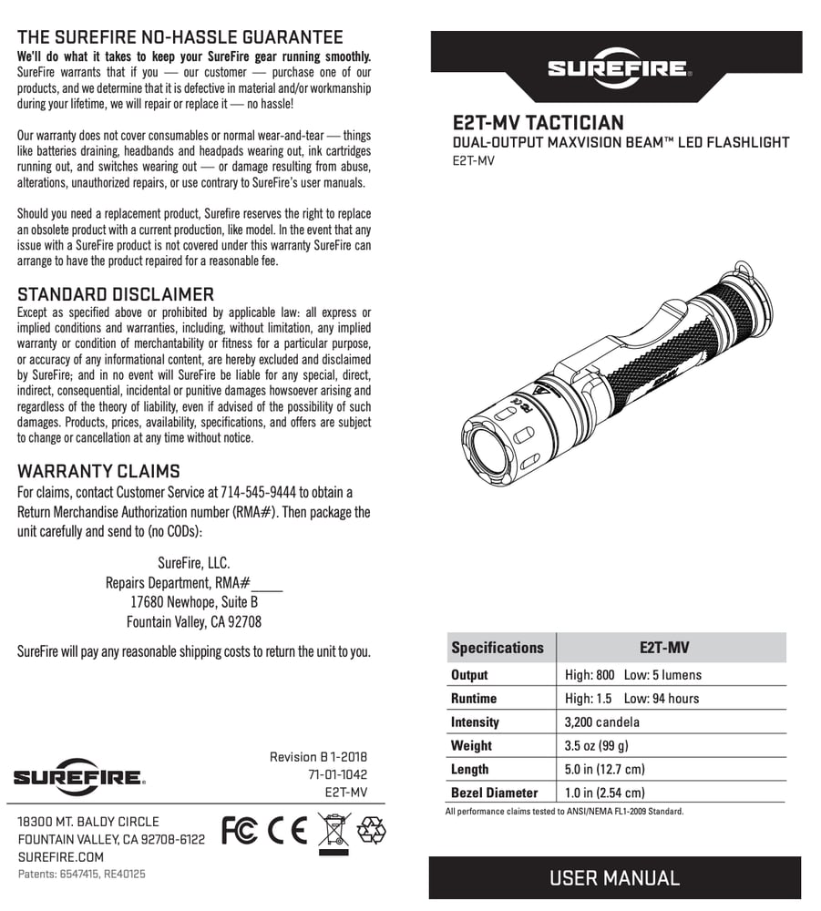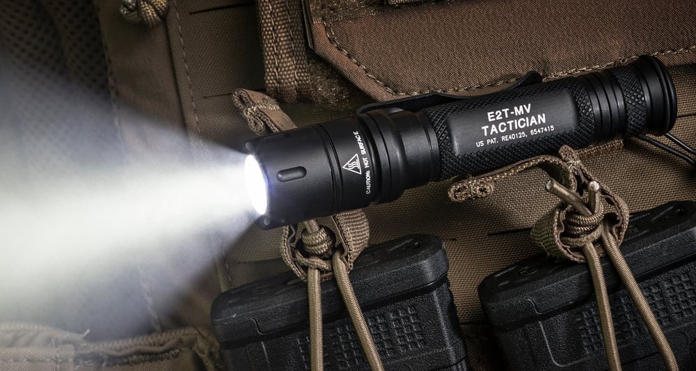Illuminate Tactical Scenarios. The SureFire E2T MaxVision Tactician is the ultimate dual-output, compact flashlight, designed at the request of top-tier firearms trainers. Its versatile dual-output LED and MaxVision Beam® deliver a broad, useful wall of light, perfect for everyday carry or tactical use.