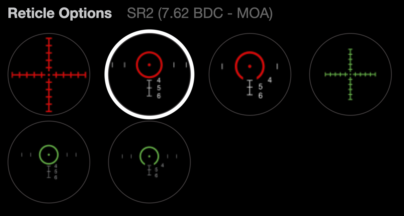 The SR2 incorporates the iconic EOTECH illuminated speed ring along with a BDC inner reticle calibrated for the 7.62 mm (M118LR) out to 600 yards. The first focal plane design allows for lightning fast target acquisition using the speed ring at the lower power settings. When the magnification setting is dialed up, the speed ring disappears from view and the inner BDC comes into view for more precision on longer-range shots.