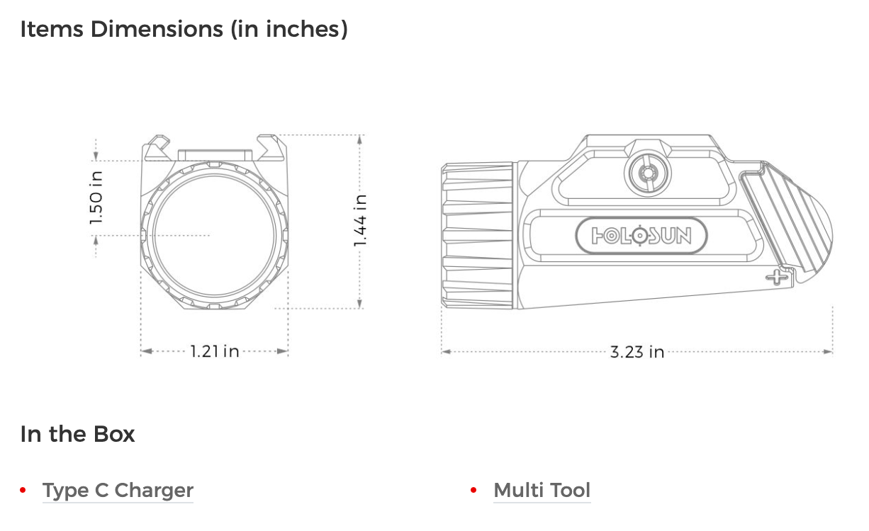 The Holosun P.ID HC is a compact and powerful pistol-mounted white flashlight designed for Positive IDentification of threats in low or no light conditions. Engineered for precision and reliability, the P.ID HC attaches securely to any firearm with a MIL-STD 1913 Picatinny accessory rail and includes adapters for universal compatibility. Its housing is milled from durable 7075 T6 aluminum and anodized for rugged performance in any environment.