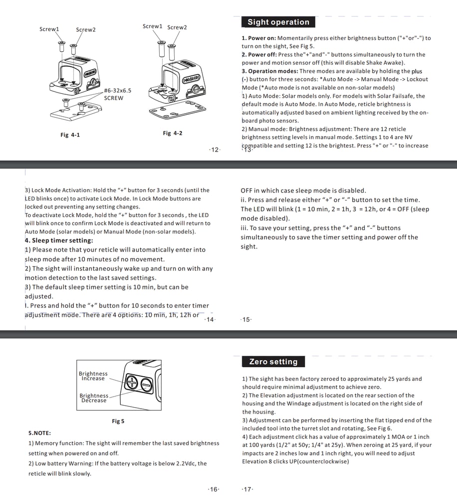 - Reticle Intensity Settings: 8 daylight and 4 night vision-compatible settings