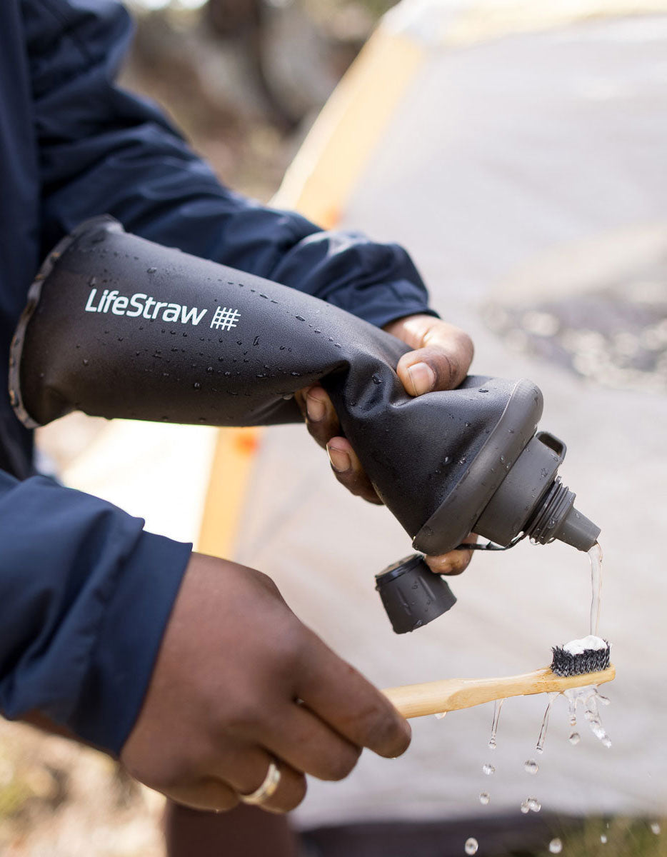 - LifeStraw Peak Series 1L collapsible squeeze bottle with screw-top cap and tether