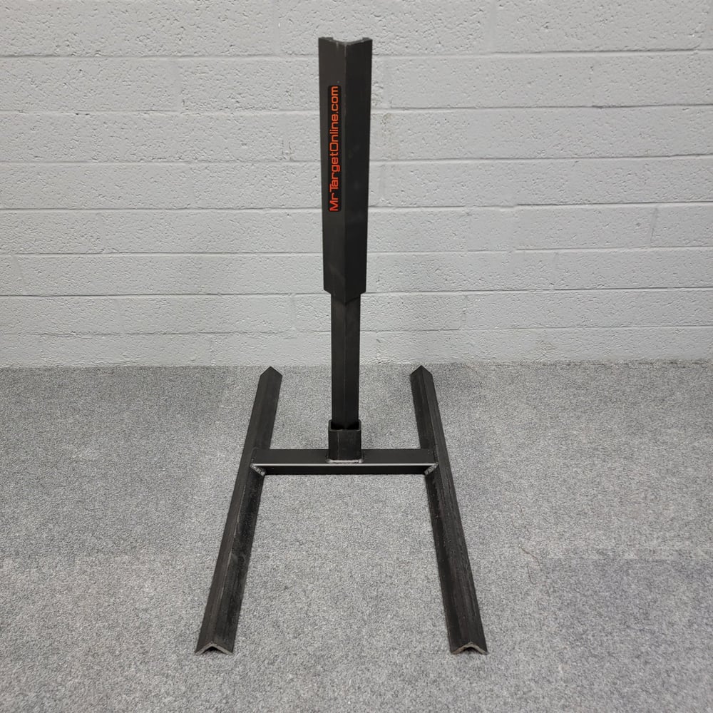 This base has a low-profile armored center post that withstands every kind of abuse while keeping a lower, more solid center of gravity for your heavier and/or taller targets. The Armored Base also puts our Rubber Dummy and Paper Bracket targets at the correct height. 30” tall.