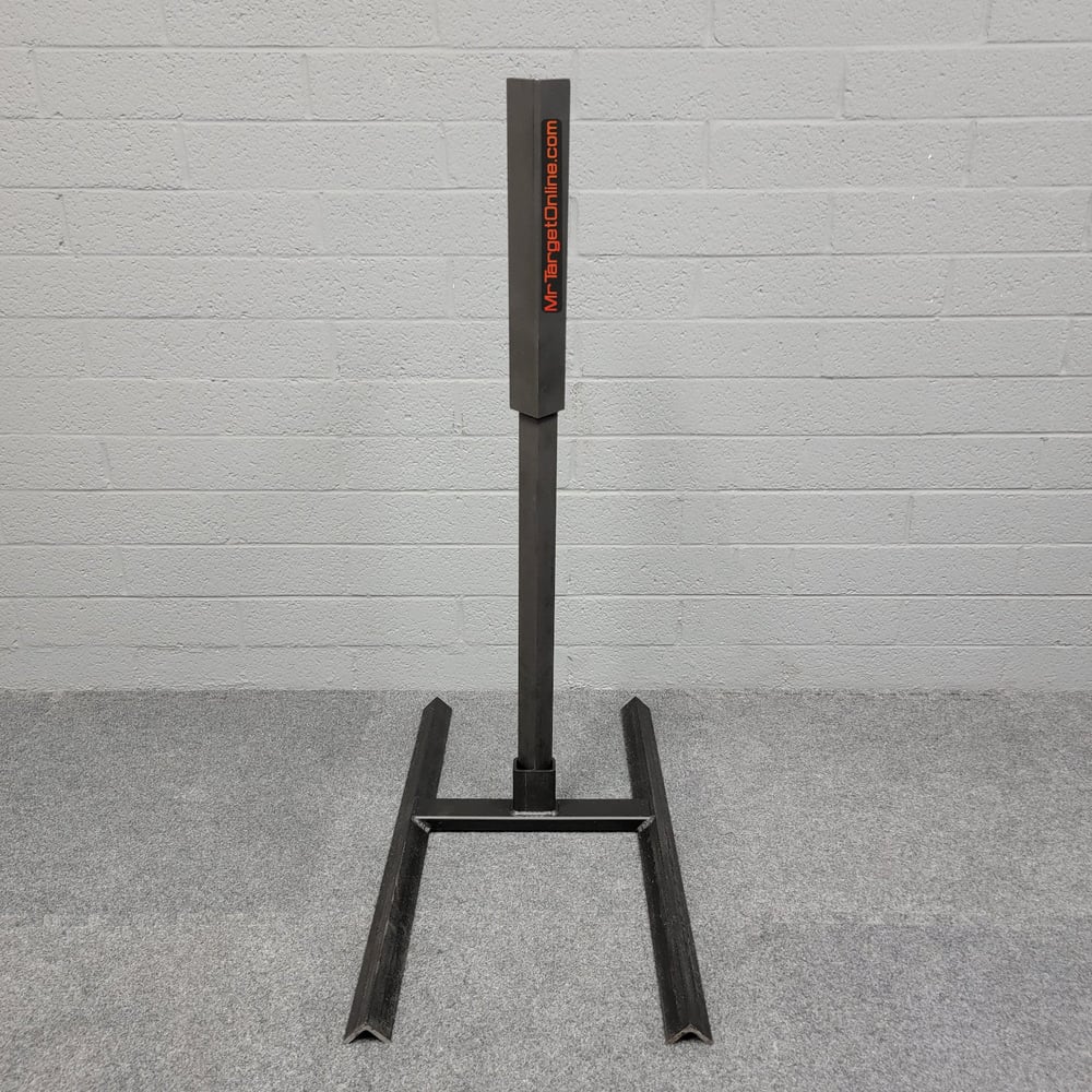 This base has a low-profile armored center post that withstands every kind of abuse while keeping a lower, more solid center of gravity for your heavier and/or taller targets. The Armored Base also puts our Rubber Dummy and Paper Bracket targets at the correct height. 30” tall.