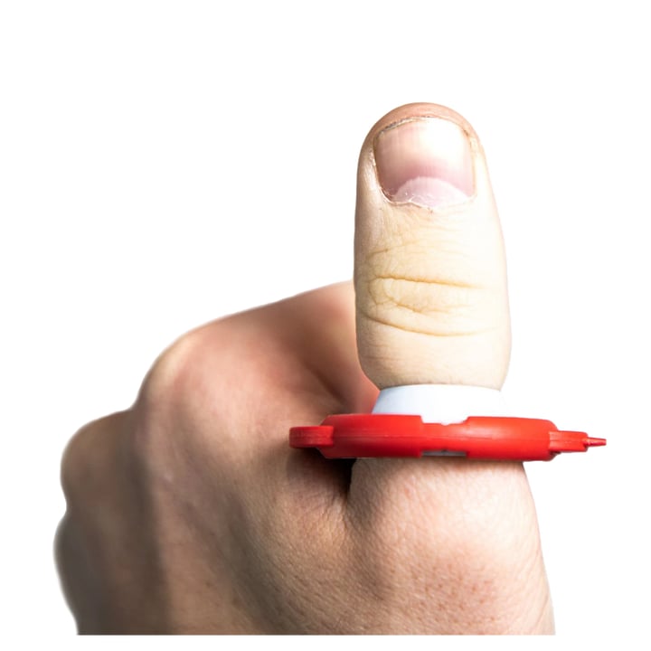 The T-Ring digital tourniquet is a one size fits all device which provides reliable hemostasis for surgery on the digits. The device comprises a brightly-colored outer plastic ring within which is a flexible disc which itself contains a hole. The ring has two “cutaway” sections on it, which allow its two halves to be separated, pulled apart and gently moved over a larger laceration if appropriate.