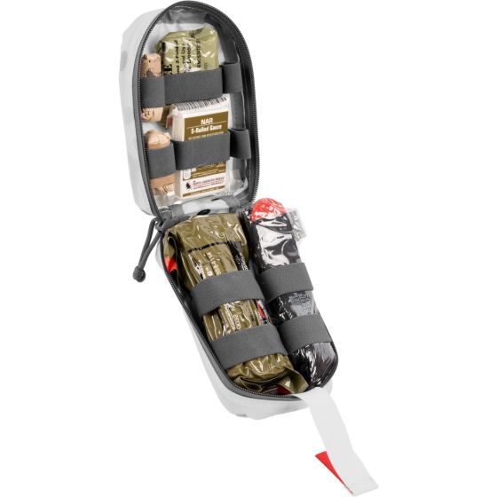 Compact and rugged, this kit attaches easily to an assault vest or body armor via MOLLE/PALS style webbing and is compatible with NAR® Quick Detach Panels (sold separately). Its signature Red-Tip Technology® rapid opener allows fast, one-pull tab access to all contents—when seconds count, you’ll have what you need at your fingertips.
