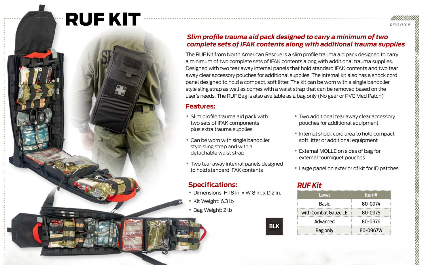 NAR - RUF Trauma Aid Kit with IFAK Supplies, Black - Basic is backordered and will ship as soon as it is back in stock.