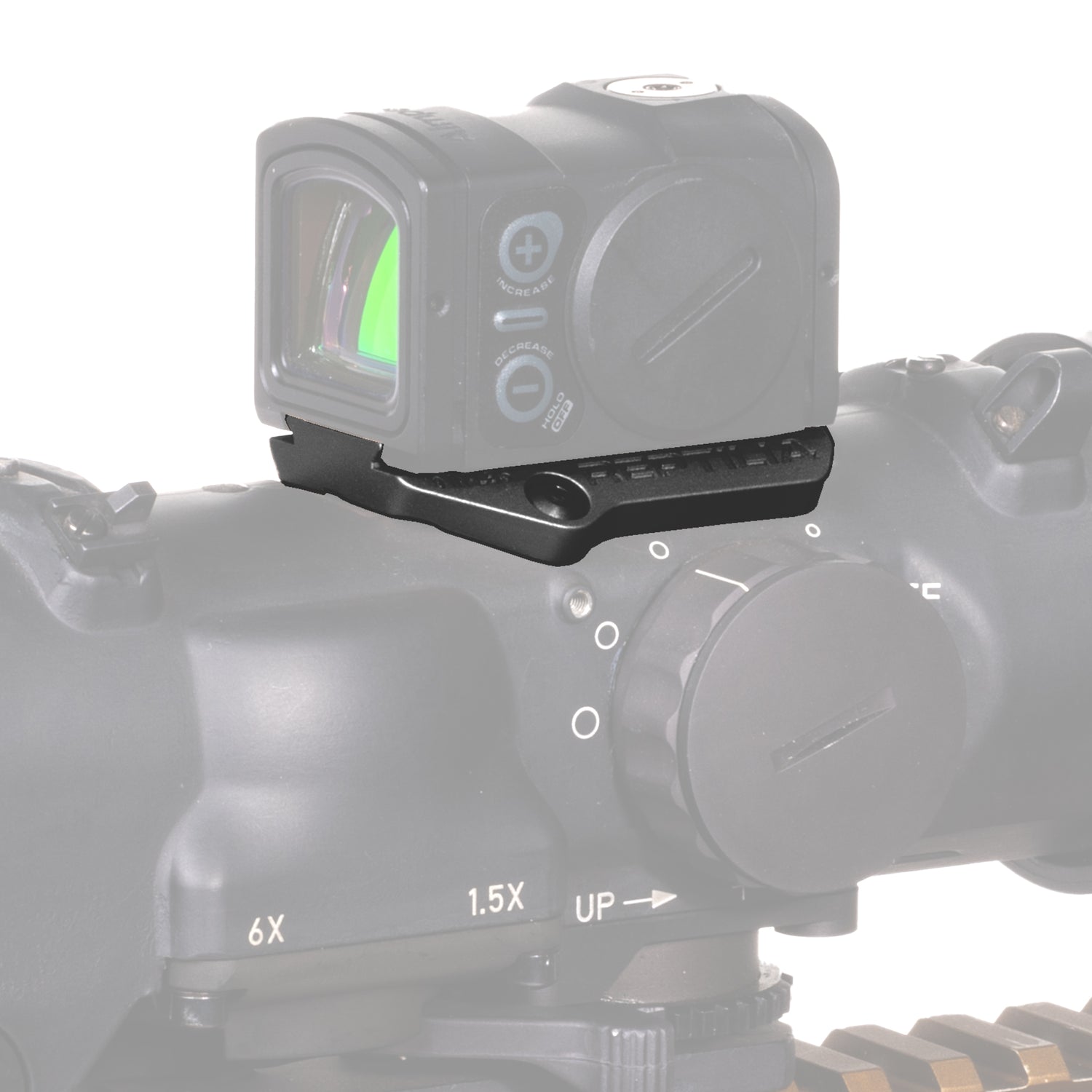 The Reptilia® SADDLE™ Mount is a precision-engineered solution designed for U.S. military applications, providing a durable and versatile platform for attaching miniature red dot sights to the Elcan® SpecterDR 1.5-6x and 1-4x Optical Sights. This mount enhances tactical performance by integrating Aimpoint® ACRO P-1 or P-2, Steiner Optics® MPS, or Lead and Steel Pandora PB-3 optics with machine gun setups.