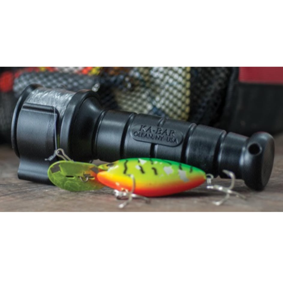 The KA-BAR® Backpack Kaster is an American-made, lightweight fishing system designed for outdoor enthusiasts. Weighing just 0.25 lb, this compact fishing tool is perfect for tagging along on your hiking, camping, or backpacking adventures. Made from durable Ultramid®, the Backpack Kaster is comprised of three main components. The handle, inspired by the iconic KA-BAR USMC Fighting/Utility Knife, includes a hollow storage compartment for extra line and lures. The head is where the fishing line attaches, and a plastic clamp secures the line when not in use.