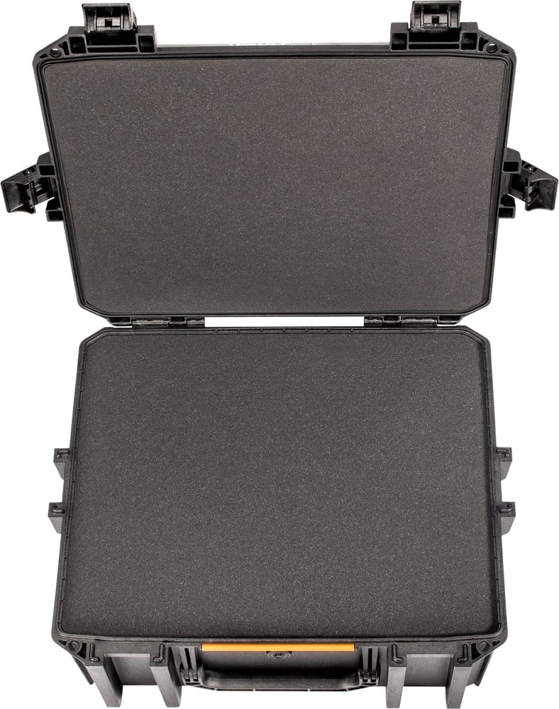 Constructed from high-impact polymer, the case is crushproof, dustproof, and weather-resistant. It includes four layers of protective foam for customizable interior protection and features four push-button latches for secure closure with easy-open access. The ergonomic heavy-duty handles add comfort to carry, even in harsh conditions.