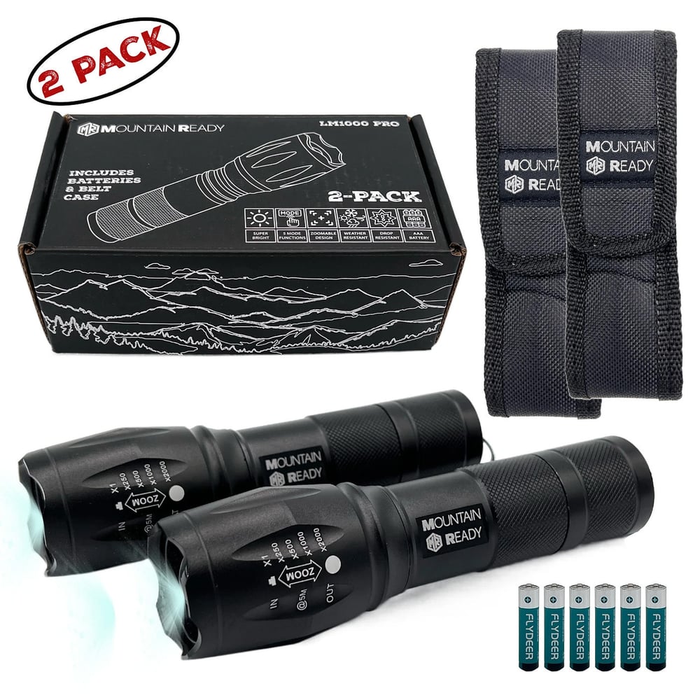 - WHAT’S INCLUDED – Unlike other brands, Mountain Ready provides high-quality belt cases, a wrist lanyard, and AAA batteries with every flashlight for immediate use, value, and convenience. You will not find another brand on the market that provides these features for same price and quality.
