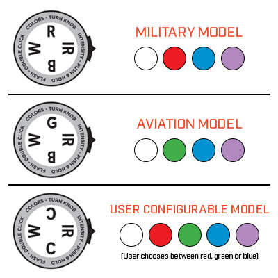 - Aviation Model – White, Green, Blue, and IR LEDs.