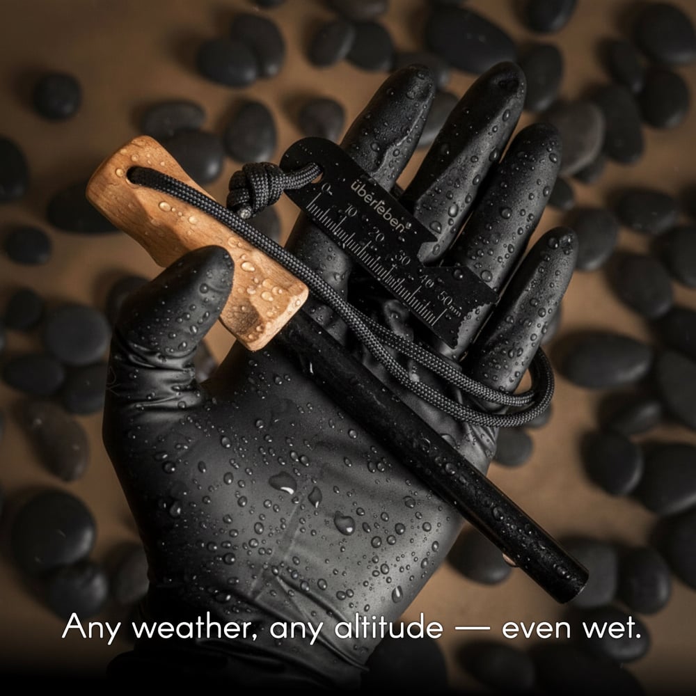 Included is Uberleben’s classic multi-tool striker paired with a rugged 550 paracord lanyard, giving you a simple, proven fire-starting system that’s easy to carry and always ready when fire matters most.