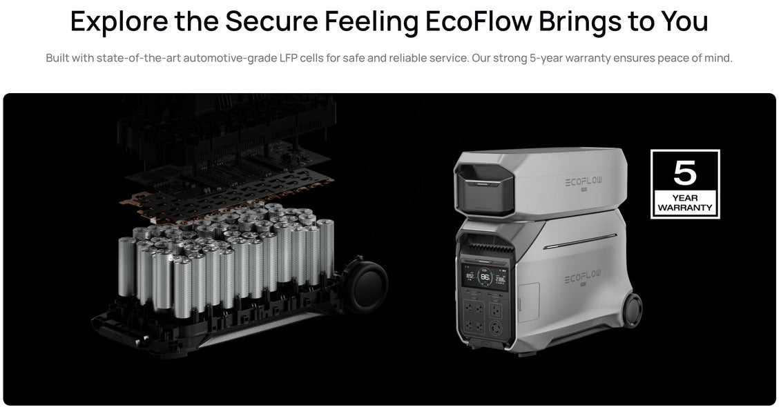 Backed by EcoFlow’s 5-Year Warranty, this smart battery offers dependable performance you can count on in any emergency.
