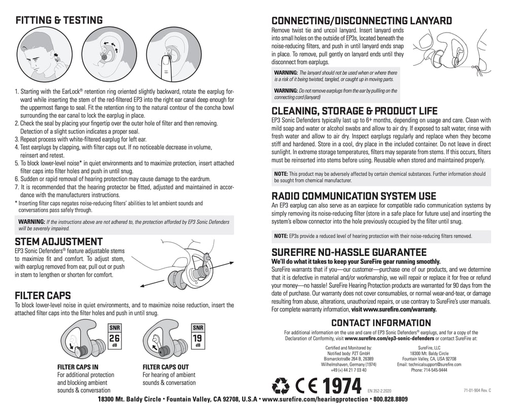 - EP3 earpieces will not provide hearing protection if the noise-reducing filter is removed.