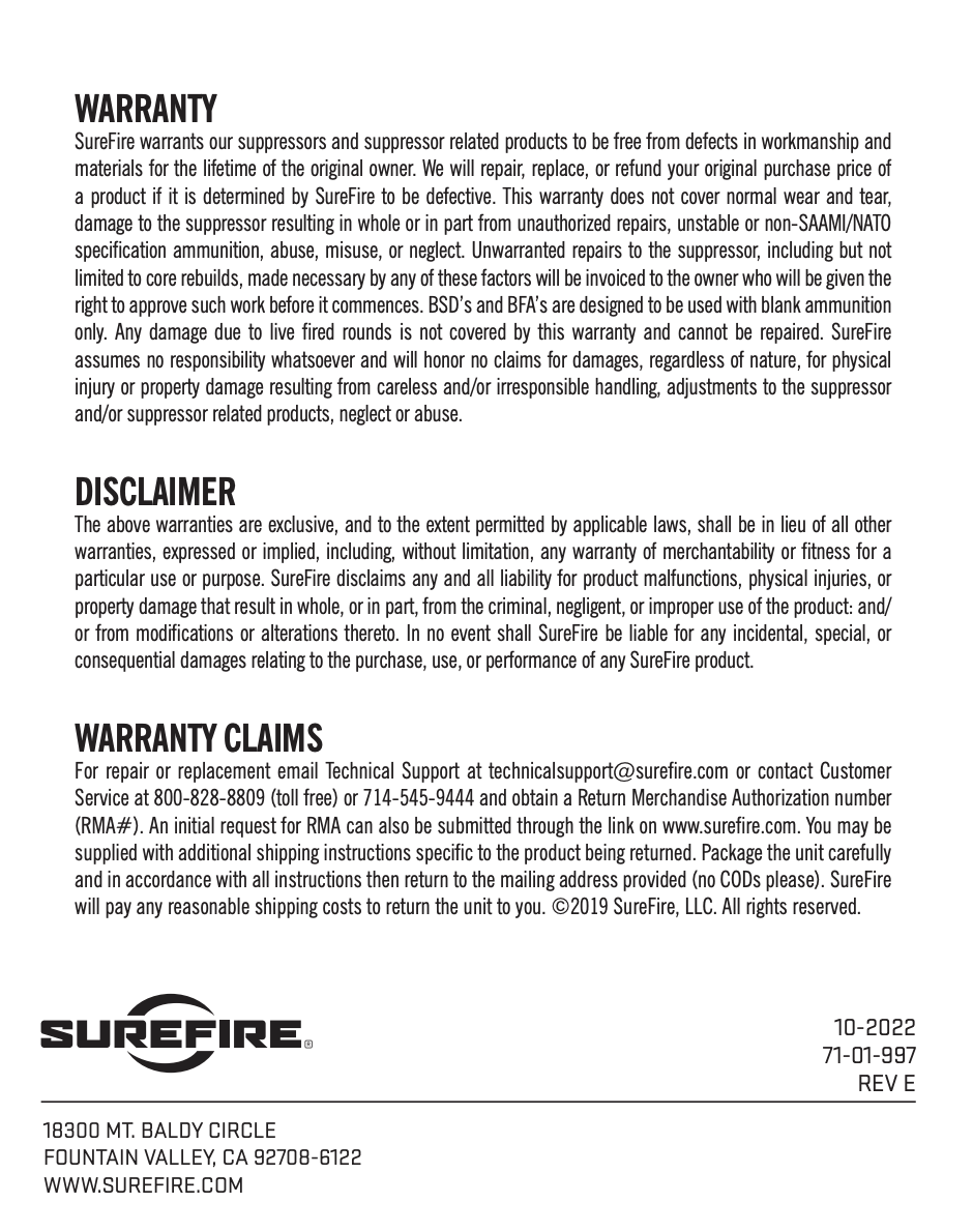 • Multiple bearing surfaces ensure optimal suppressor alignment and eliminate ringing inside the suppressor