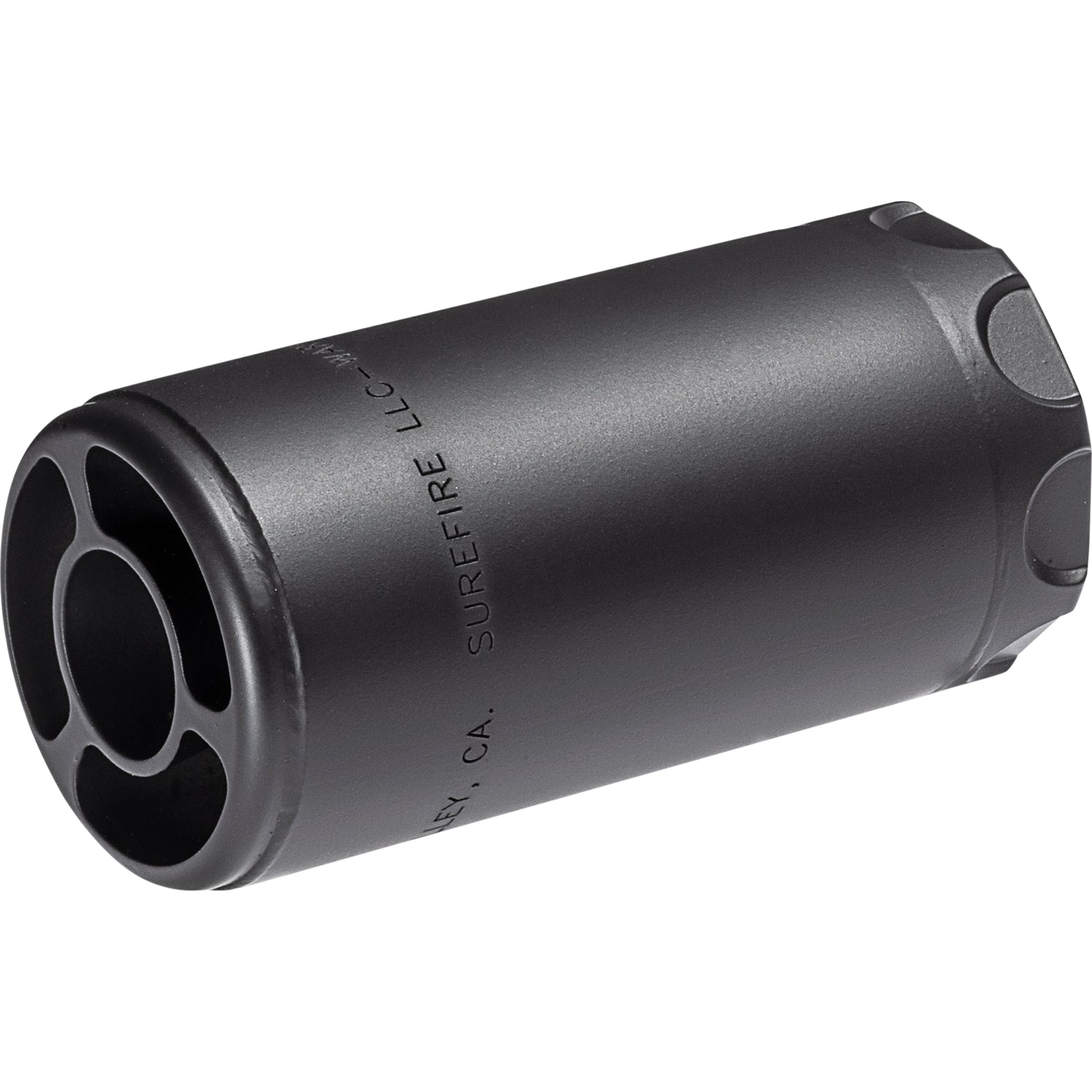 The SureFire Warden Direct Thread Blast Regulator is a precision-engineered device that directs the blast concussion forward, minimizing overpressure effects for those positioned to the left and right of the shooter. Perfectly designed for 5.56 and 7.62 mm weapons, the Warden limits dust disturbance when firing from a prone position, enhancing both performance and appearance. Constructed from rugged, heat-treated stainless steel and finished with Cerakote®, this non-NFA device threads directly onto barrels with 1/2-28 or 5/8-24 threads, making it a versatile and accessible choice for tactical and recreational shooters alike.