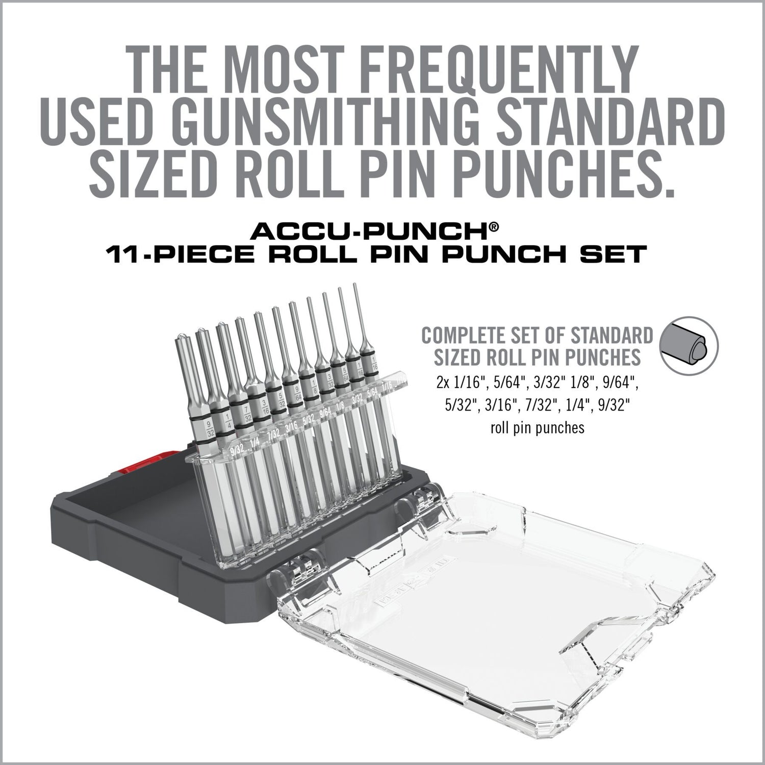 Upgrade your gunsmithing tools with the ACCU-PUNCH® 11-Piece Roll Pin Punch Set, engineered to deliver reliable performance and precise results for all your firearm maintenance and modification needs.