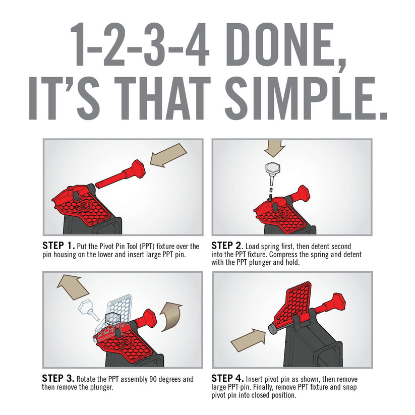 The AR15 Pivot Pin Tool by Real Avid is a Master Grade® tool engineered to eliminate the frustration of installing the pivot pin in your AR15 rifle. Designed to prevent fumbled springs, launched detents, and general headaches, this tool transforms a traditionally tricky task into a simple, four-step process that takes under 60 seconds.