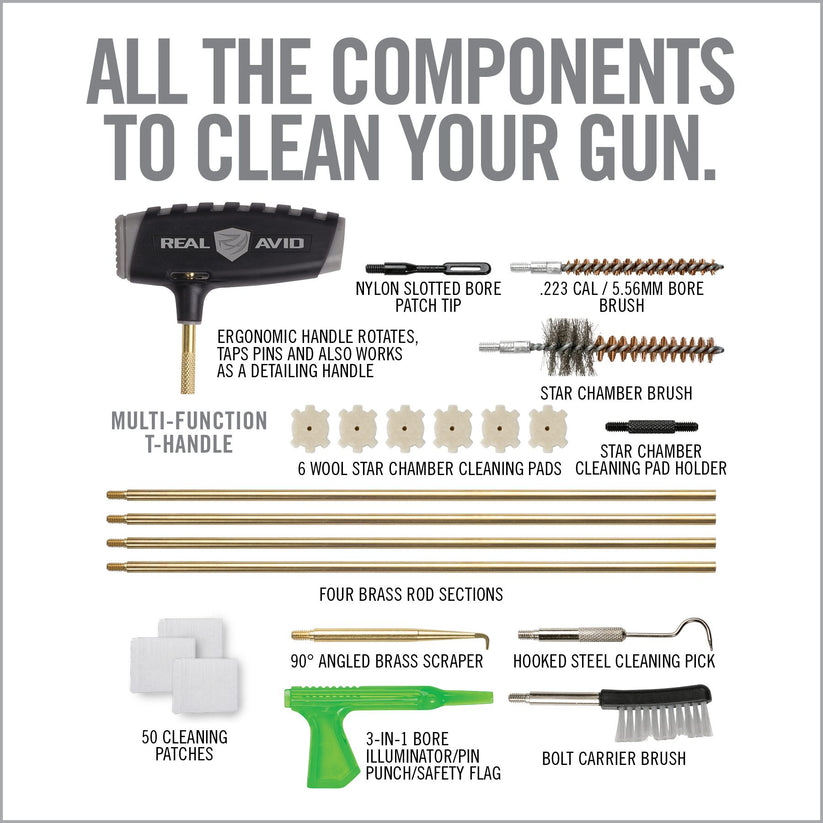 Unlike traditional kits, this AR15 cleaning kit prioritizes organization and efficiency with its rugged case that keeps tools secure and ready for use. The ergonomic design, high-quality materials, and versatile components ensure reliable maintenance for both professional shooters and enthusiasts. Protect your investment and ensure optimal firearm performance with the Gun Boss® Pro AR15 Cleaning Kit by Real Avid.