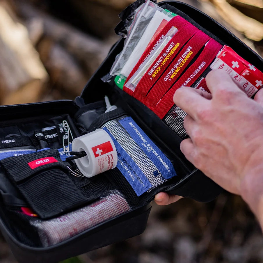 The Uncharted Supply Co. First Aid Plus is more than just a first aid kit—it's a survival kit packed into a waterproof, airtight shell. Crafted from 600D tarpaulin with welded seams and a watertight zipper, this kit is designed to withstand the toughest conditions, making it perfect for boats, trucks, tractors, side-by-sides, and more. With a tear-away MOLLE backer, it attaches securely to your vehicle or gear and detaches quickly when needed. Inside, you’ll find all the essentials of the First Aid Pro, plus a selection of survival tools like a flashlight, multi-tool, stormproof matches, and duct tape, making it the ideal companion for any adventure.