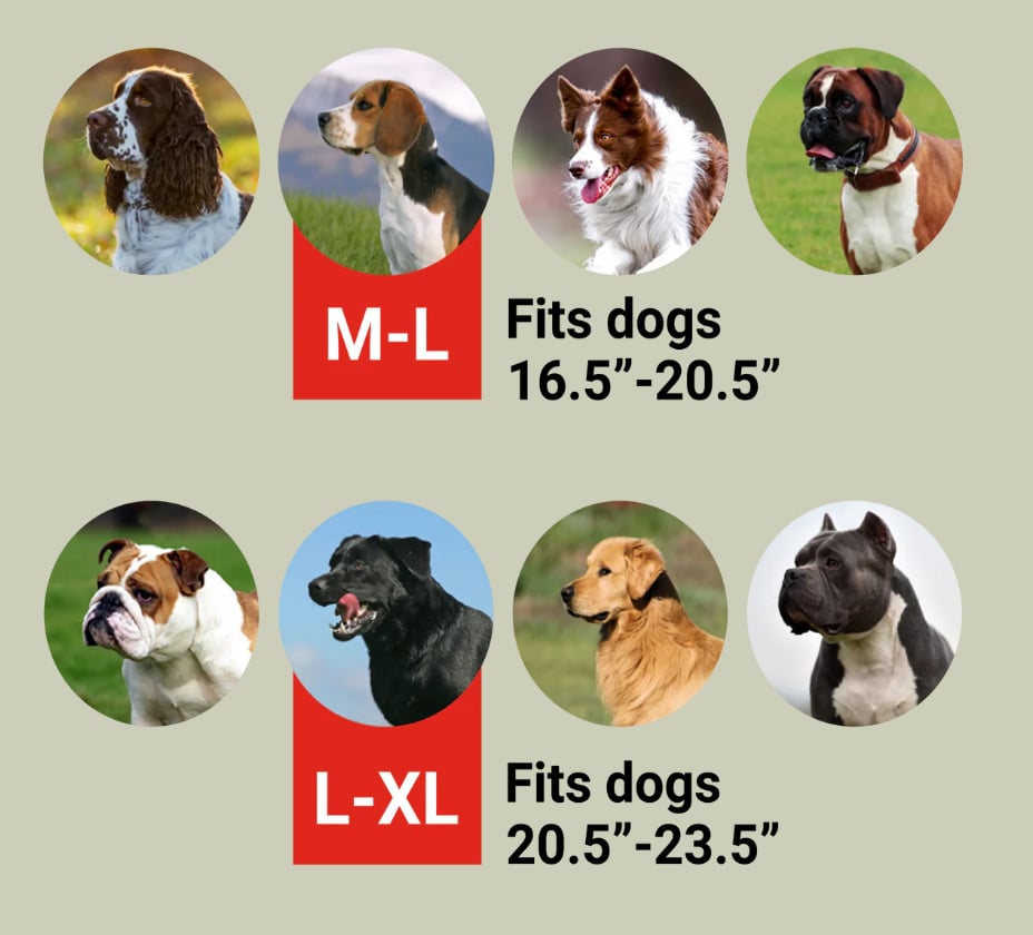 - M/L: 16.5" - 20.5", fits medium breeds like Border Collies and Boxers
