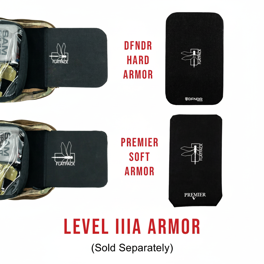 - Hydration / Armor Compartment – Accepts 1-liter hydration bladders or FlatPack Plus Level IIIA armor inserts (sold separately)