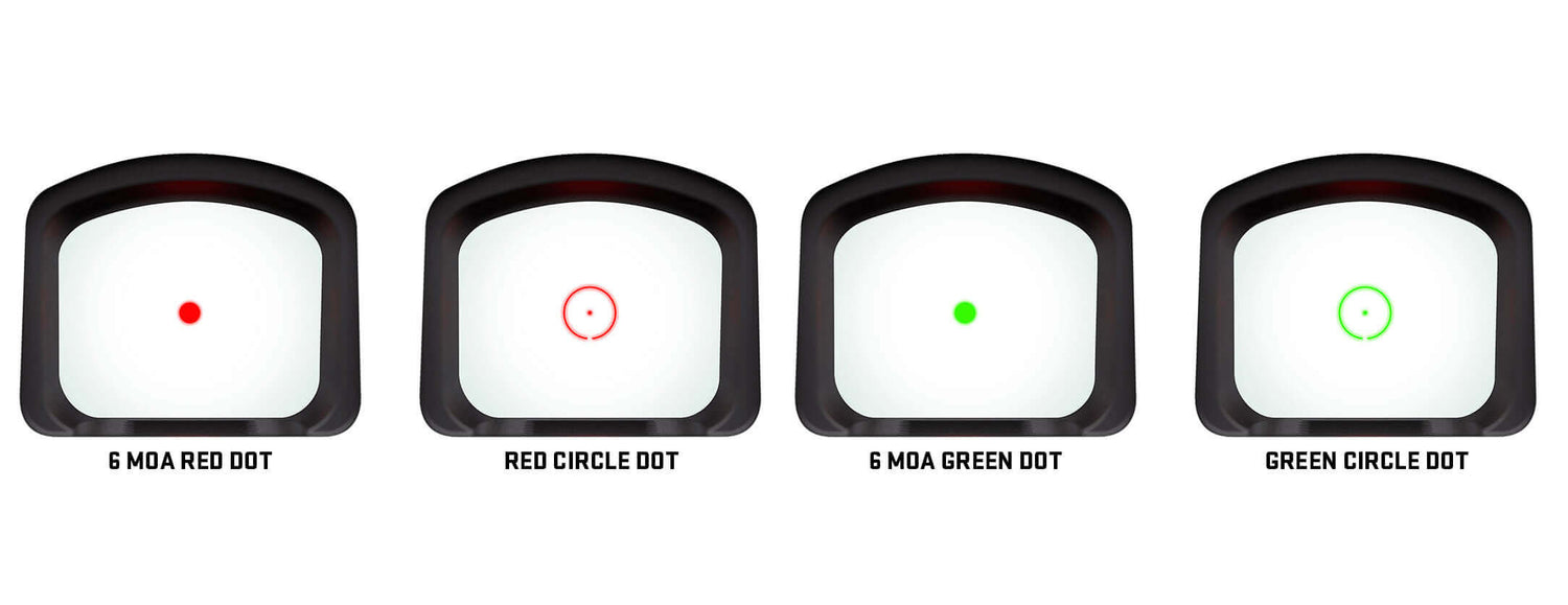 - Optical: Distortion-free aspherical lens, open-emitter design, 1x magnification for both eyes open target acquisition