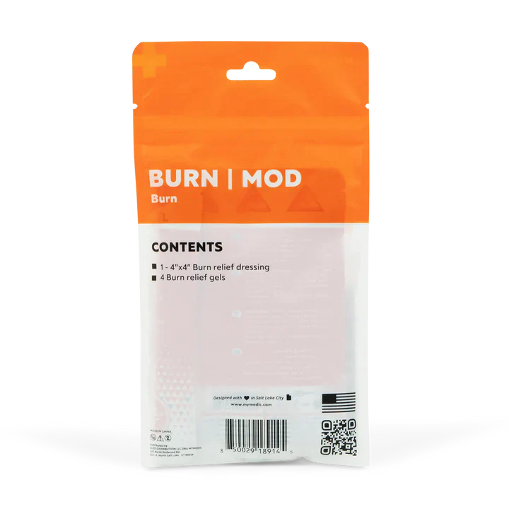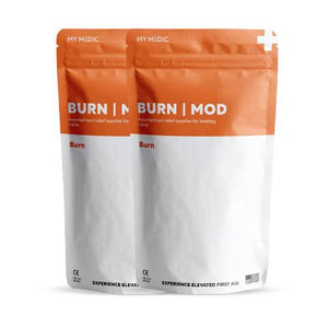 Assortment of burn relief supplies to treat burn related injuries. Our MOD system is the perfect solution to re-stock or upgrade your My Medic First Aid Kit.