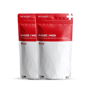 Assorted gauze pads and rolls to control bleeding. Our MOD system is the perfect solution to re-stock or upgrade your My Medic First Aid Kit.