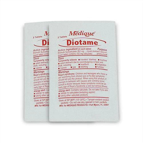- 2 DIOTAME PACKETS - Used to treat occasional upset stomach, heartburn, and nausea.