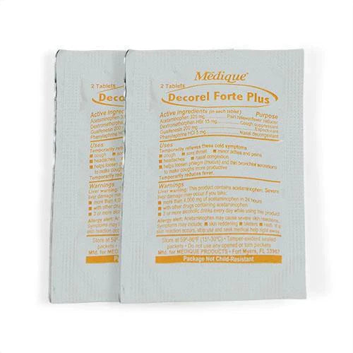 - 2 DECOREL FORTE PLUS - Used to temporarily treat cough, chest congestion, fever, body aches, and stuffy nose symptoms caused by the common cold, flu, or other breathing illnesses.