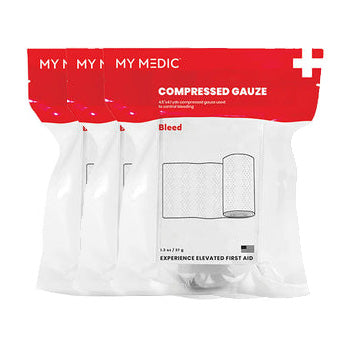 Compressed and vacuum sealed medical gauze used to deal with serious bleeding. Often used in conjunction with a compression bandage. Can also be used as backing gauze for hemostatic dressings or for wound bandaging.