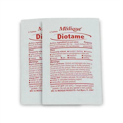 - 2 DIOTAME PACKETS - Used to treat occasional upset stomach, heartburn, and nausea.