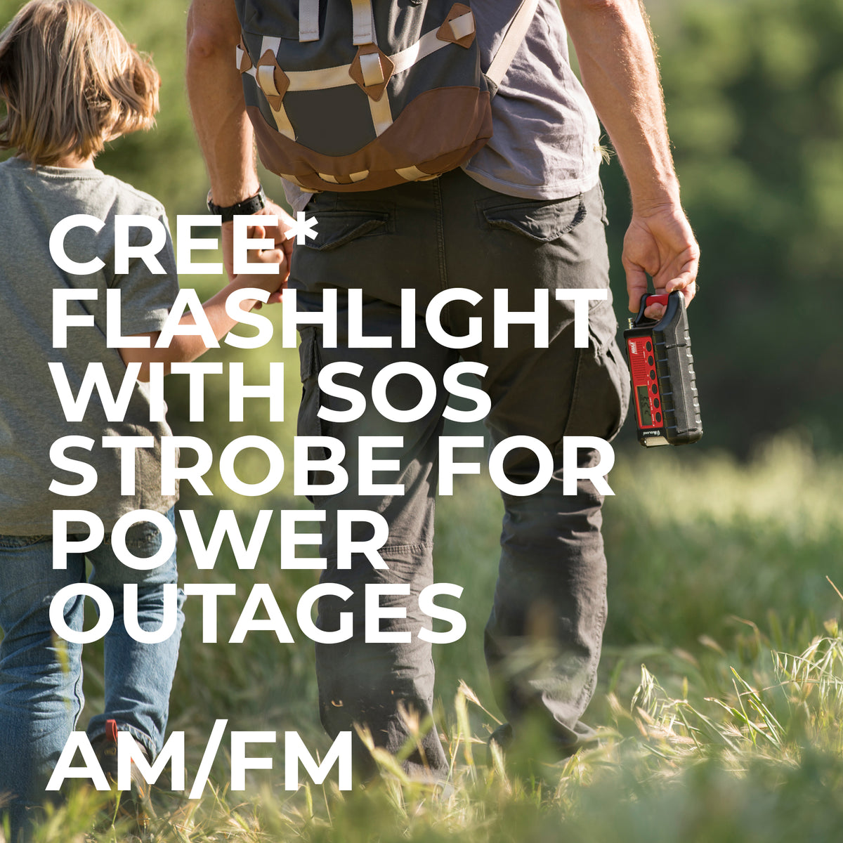Designed for self-reliance, the ER310 features multiple sustainable power sources including solar, hand crank, and a long-lasting rechargeable lithium-ion battery. It also includes a unique SOS beacon, ultrasonic dog whistle for search and rescue, and a bright 1400-lux Cree® LED flashlight.