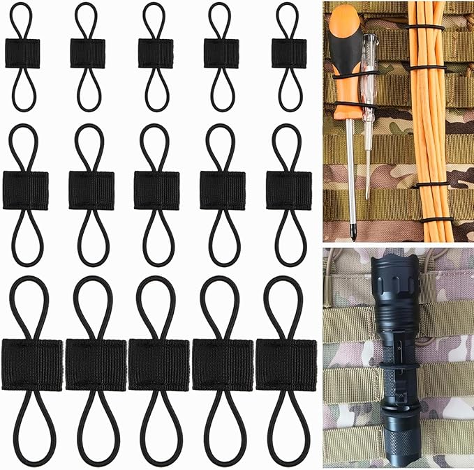 Enhance your tactical setup with this versatile 15-pack of MOLLE attachments from Mountain Ready. These multipurpose accessories allow you to secure, organize, and expand your gear with ease. Designed for outdoor enthusiasts, tactical operators, and anyone relying on MOLLE-compatible systems, these attachments deliver rugged performance in any environment.