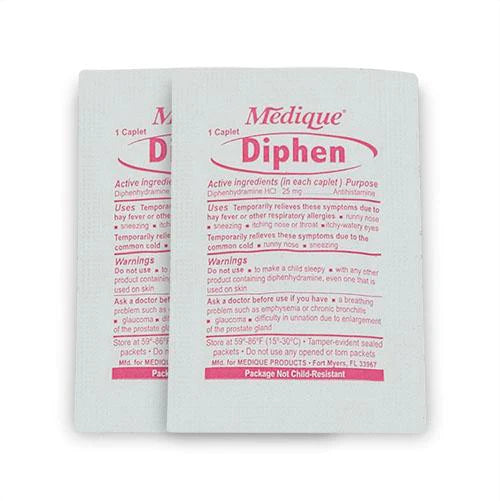 - 2 DIPHEN PACKETS - Used to relieve symptoms of allergy, hay fever, and the common cold.