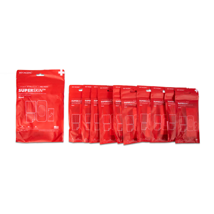 This kit contains the following items. Explore more of what the My Medic - SuperSkin Large Bandage 10-Pack Med Pack has to offer.