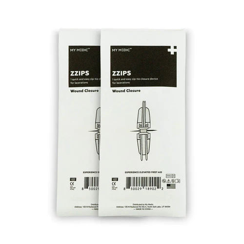 - 2 ZZIP PACKETS - Quick and easy zip-tie closure first aid device for laceration.