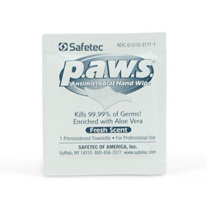 p.a.w.s. Hand Wipes are excellent for removing germs and remove debris and soil from hands and under fingernails. Formulated with 66.5% ethyl alcohol to kill 99.99% of germs and aloe vera to keep your skin feeling soft and smooth, p.a.w.s. Hand Wipes are hand hygiene on the go!
