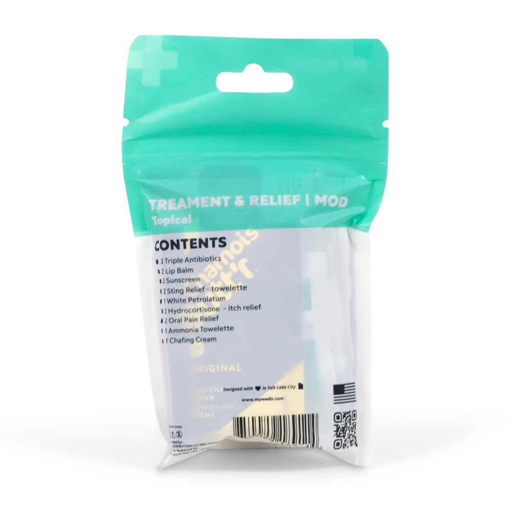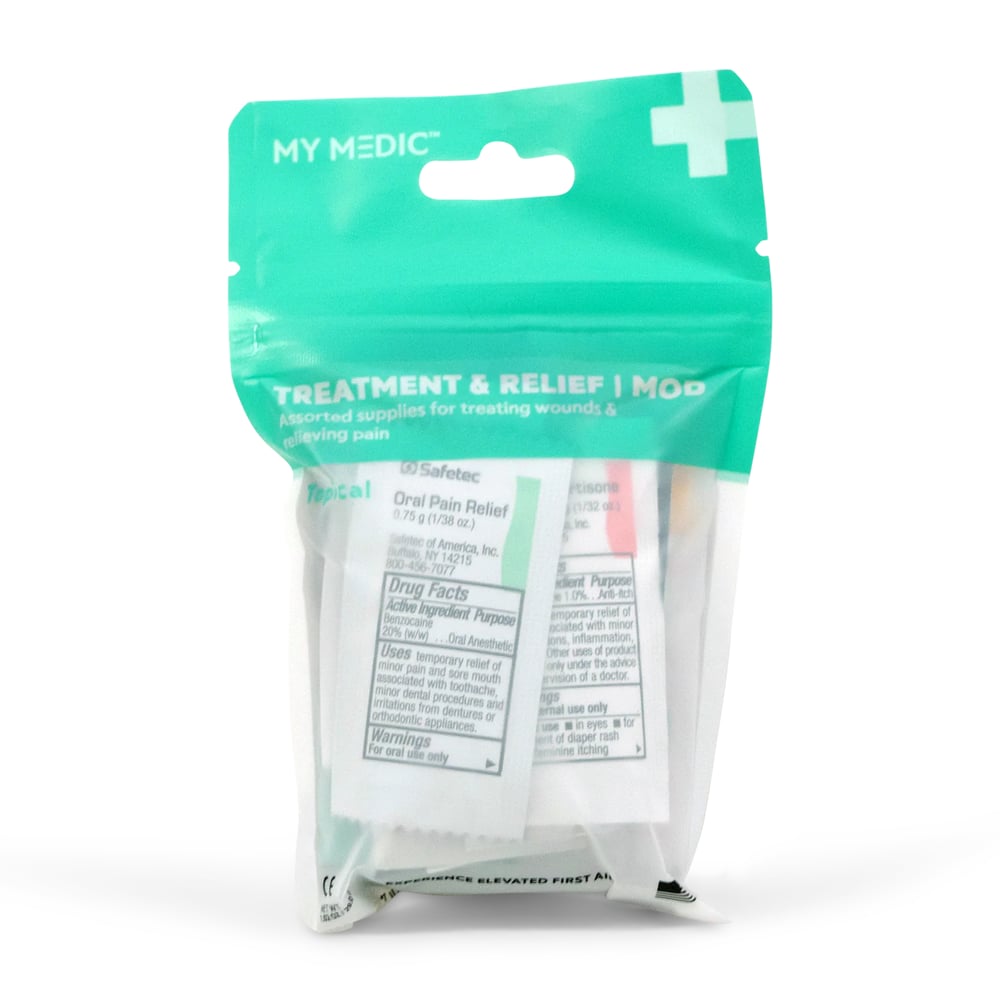 Assortment of supplies to treat wounds and relieve pain. Our MOD system is the perfect solution to re-stock or upgrade your My Medic First Aid Kit.